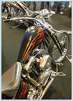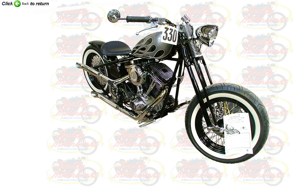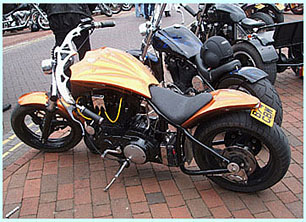 | Phil's Harley Chop. Powdercoated Frame, Forks, Wheels and Engine Components. |