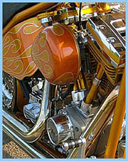 | Roy's Dyna. Powdercoated Fork Legs, Yokes, Rocker Covers and Ceramic Coated Heatshields. |